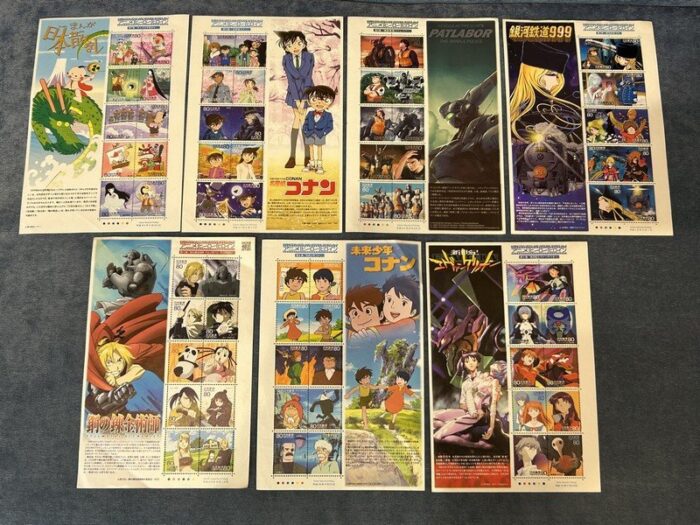 お預かりしたこのシリーズは、日本郵便が2005年から数年にわたり発行してきた、新旧の人気アニメ作品を網羅した記念切手です。『銀河鉄道999』や『新世紀エヴァンゲリオン』といった伝説の作品から、平成を彩った人気作まで、世代を超えて愛されるキャラクターが凝縮されています。単なる実用切手の枠を超え、作品ごとのファンやアニメーション文化の愛好家の間でもコレクションアイテムとして根強い人気があり、今回のような70枚というまとまったセットは、一気に系譜を網羅できるため市場でも非常に注目度の高い実力派のコレクションです。